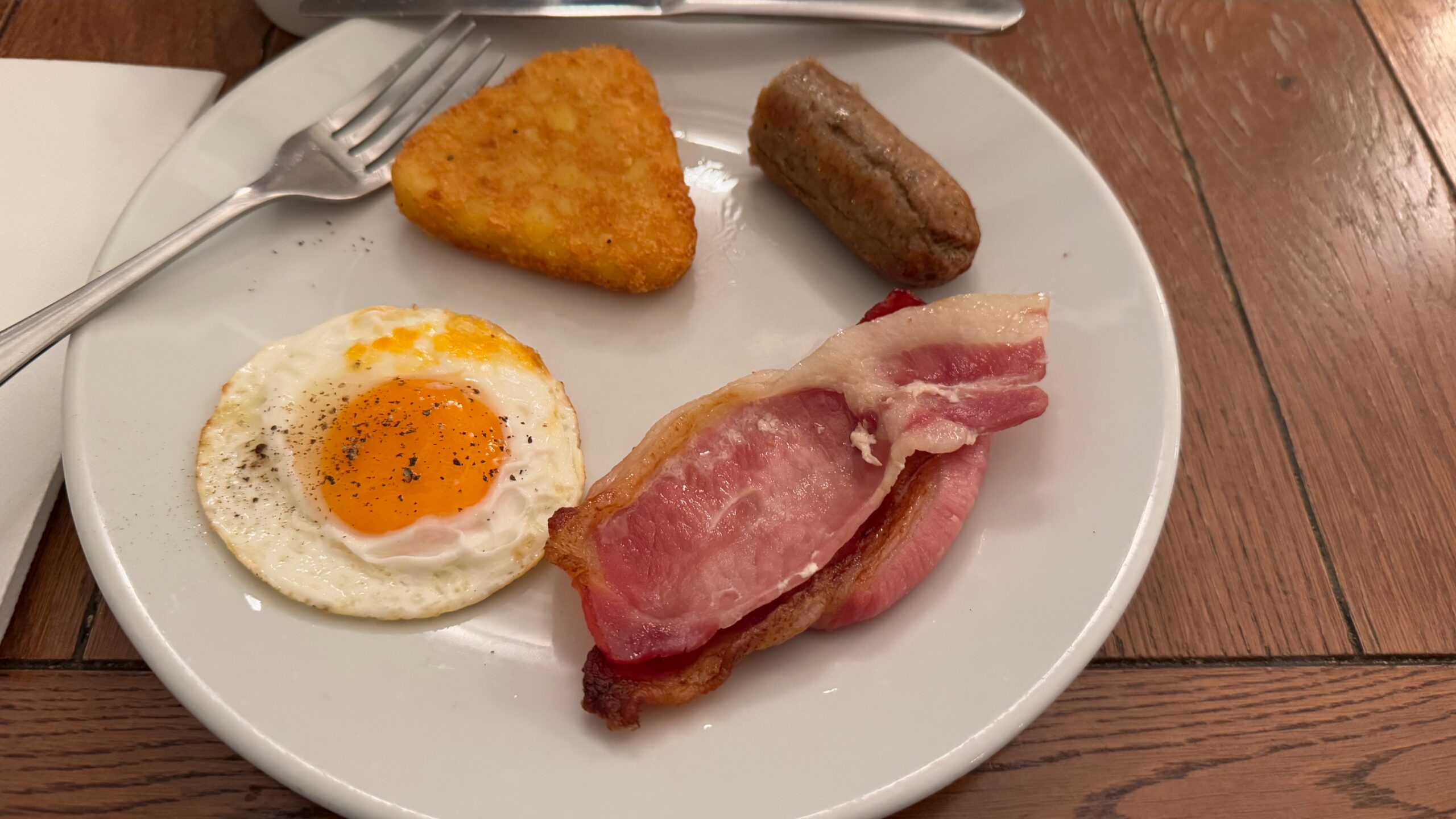 Our morning started with a delicious breakfast at the hotel. Nathan was really impressed that they had a whole warming tray of over-medium eggs ready to go. Plus, we had to laugh a bit at their “bacon”.