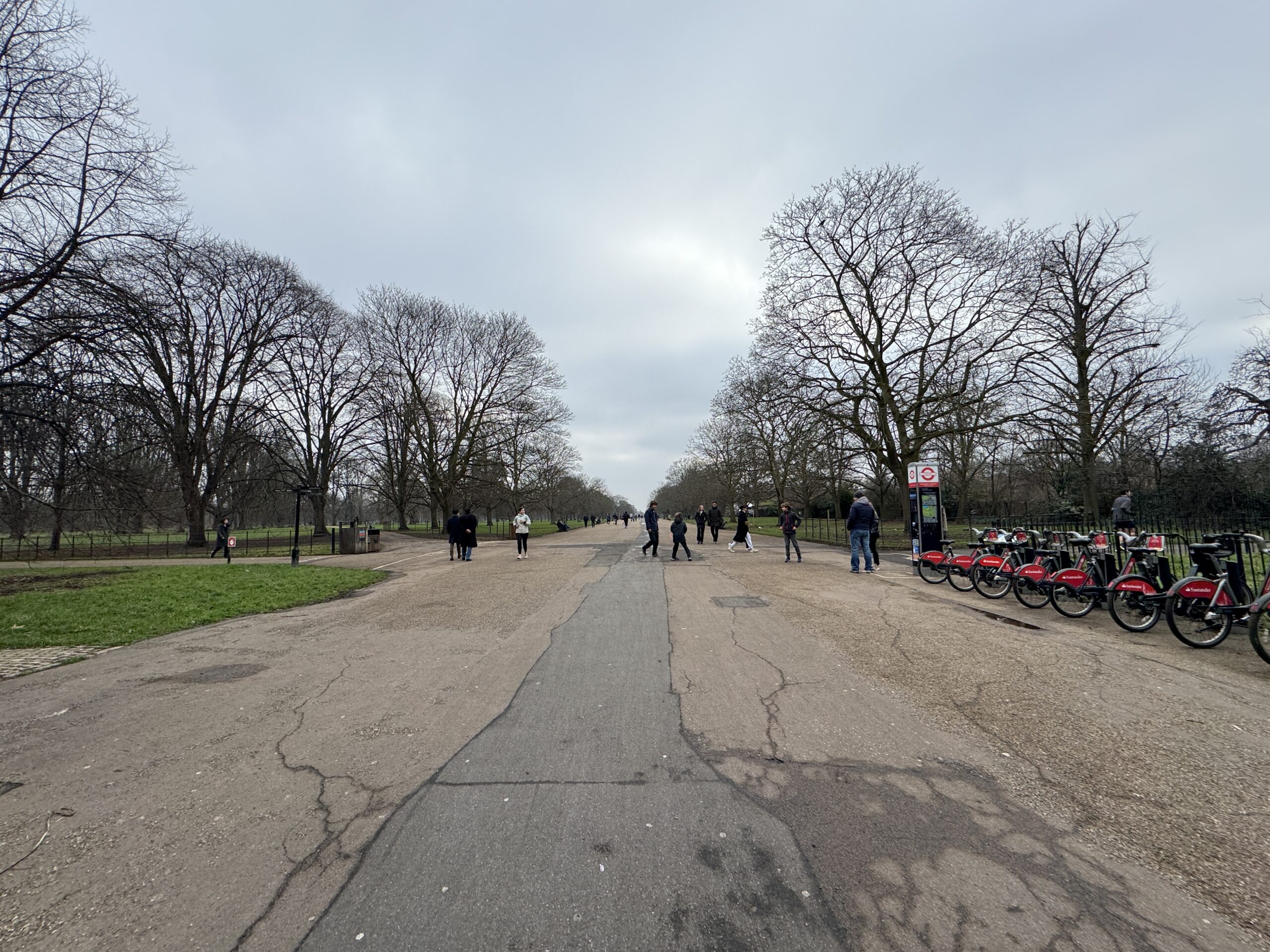 While we had a goal of going to the Apple store to get another international converter, it was easy to get wrapped up in everything there was to see in London. First up, we made our way through Hyde Park, which was across the street from the hotel. Even though it was the middle of winter and dead, it was still a gorgeous park with tons of bike and walking trails, and things to see and do throughout. We both wish we had access to something like that at home.